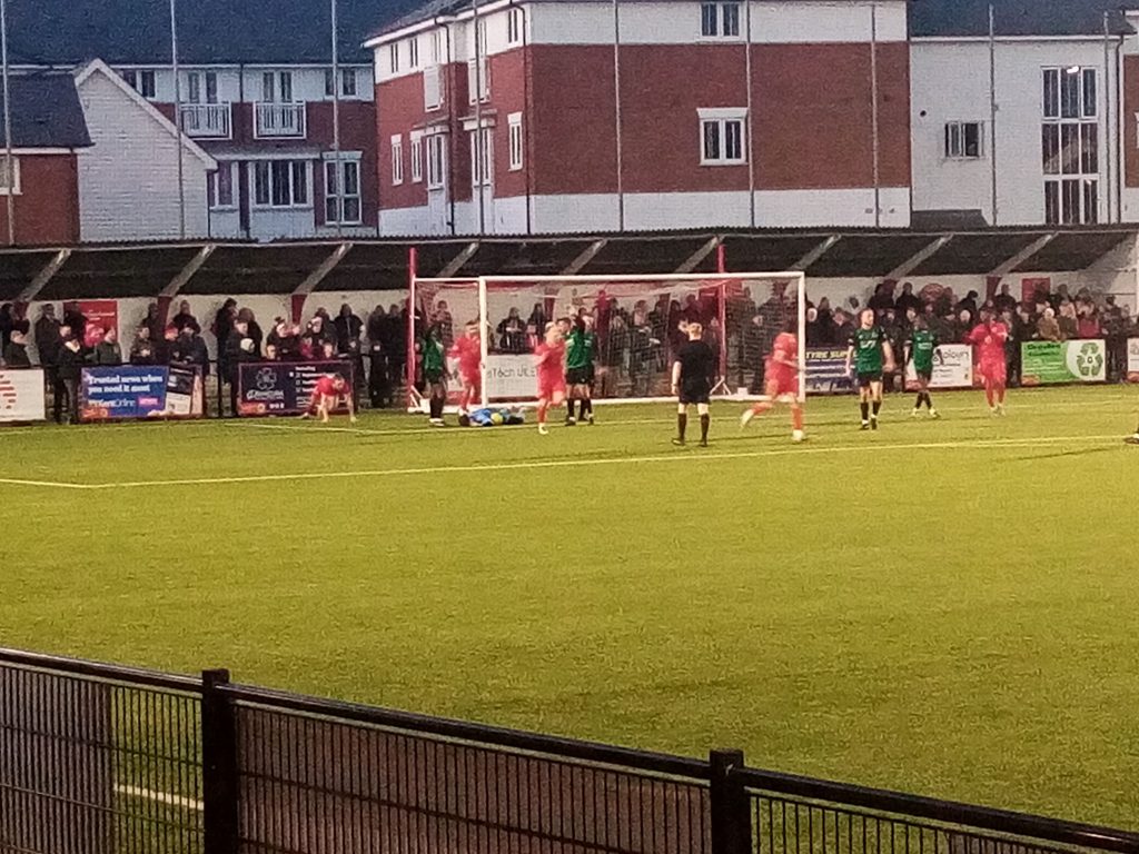 To the disgust of the visitors, the official ruled that as he had waved play-on, play would restart with a goal-kick. Phoenix were incensed to such a level that Harris was sent to the sin-bin and the visitors mood wasn’t helped as in the very next passage of play, Jayden Boulton crossed from the left and Joe Healy’s fine header appeared to have been magnificently clawed out by keeper Ryan McCourt only for the assistant (Mr. Jackson) to race back towards the half way line giving the goal.