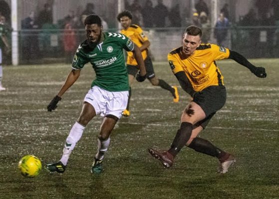 From the side so impressive in sweeping aside Herne Bay, there were two changes with Sean Roberts and Joe Taylor coming in for Karl Dent and Freddie Parker. Whyteleafe had been without a game at the weekend but are a good footballing side and this was going to be a real test for Tony Russell’s side especially on a grim and murky night with raining falling throughout the game.