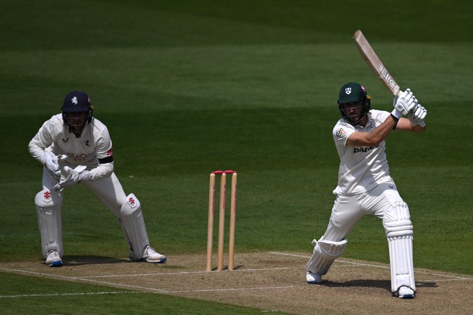 Matt Parkinson took two for 79, but it was largely a torpid day in the field for Kent, who struggled to make anything happen on a benign wicket until Joey Evison claimed late two wickets to end the day with figures of two for 39.