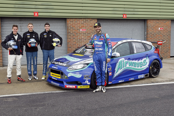 Motorbase Young Driver Test day at Snetterton. Airwaves Racing driver Tom Onslow-Cole with Josh Files, Harrison Scott and Dan Cammish.