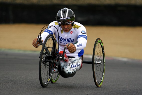 Former F1, WTCC and Champ Car racer Alex Zanardi sampled the Brands Hatch Paralympic circuit on a handbike ahead of the London 2012 Paralympic Games at the venue in September.